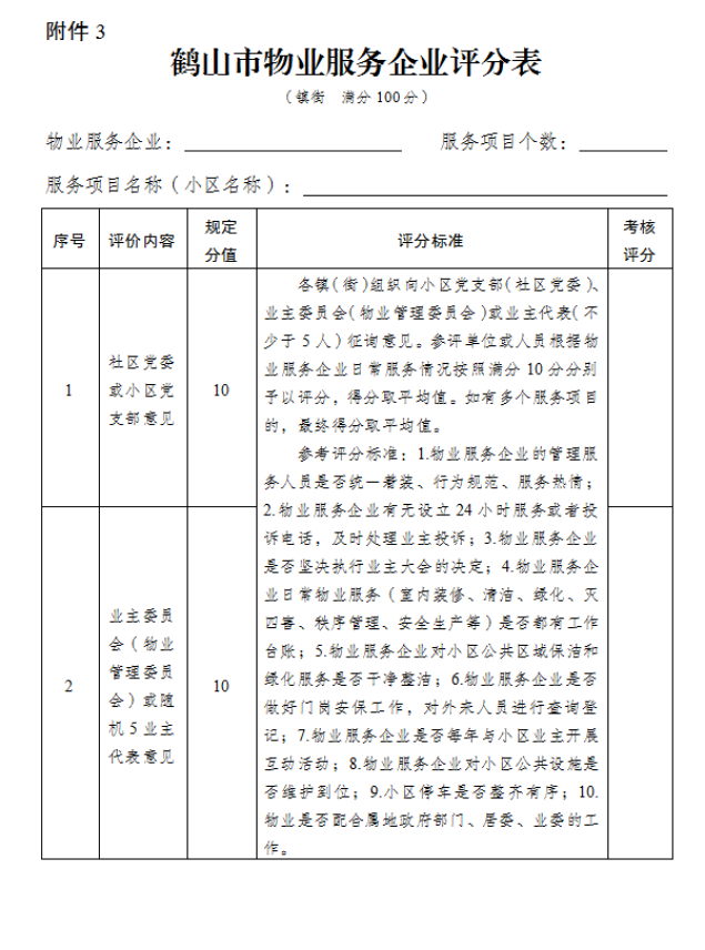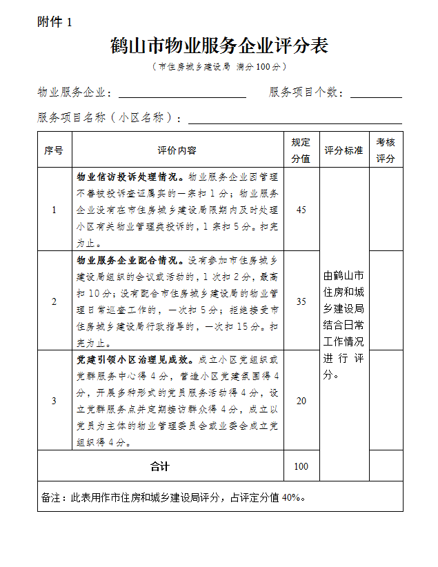 附件:1.鶴山市物業(yè)服務(wù)企業(yè)評分表(市住房城鄉(xiāng)建設(shè)局)