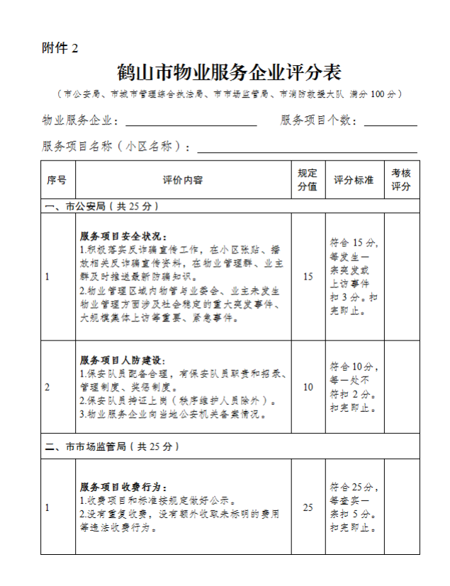 2.鶴山市物業(yè)服務(wù)企業(yè)評分表(市公安局、市城市管
