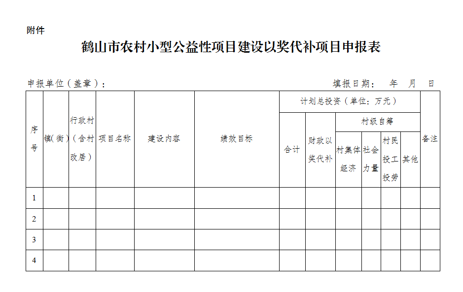 附件:鶴山市農(nóng)村小型公益性項目建設以獎代補項目申報表