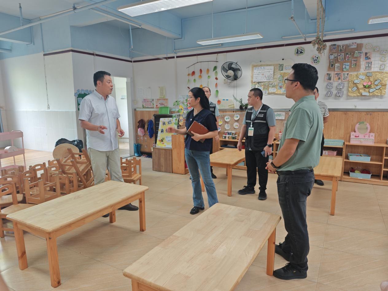 ▲沙坪街道黨工委副書記、街道辦主任黃國彬到沙坪街道幼兒園等學(xué)校開展安全督導(dǎo)檢查