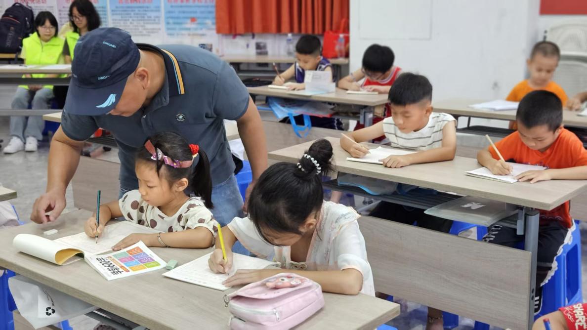 ▲8月5日,南山社區(qū)舉辦“執(zhí)筆繪夢 樂韻奕趣”暑期公益書法班