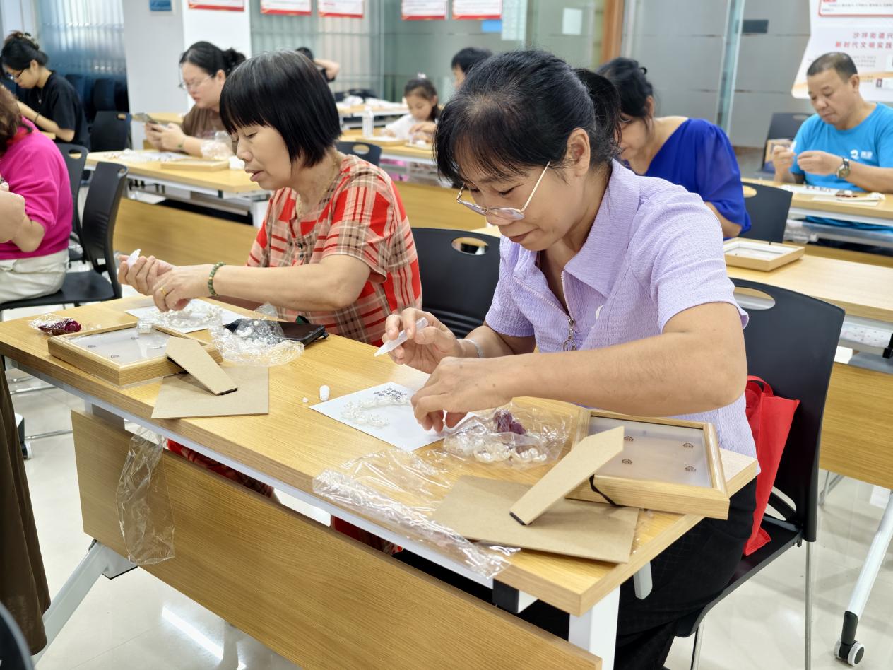 ▲東升社區(qū)新時代文明實踐站開展“賞味七夕文化,樂享社區(qū)生活”掐絲琺瑯書簽制作活動