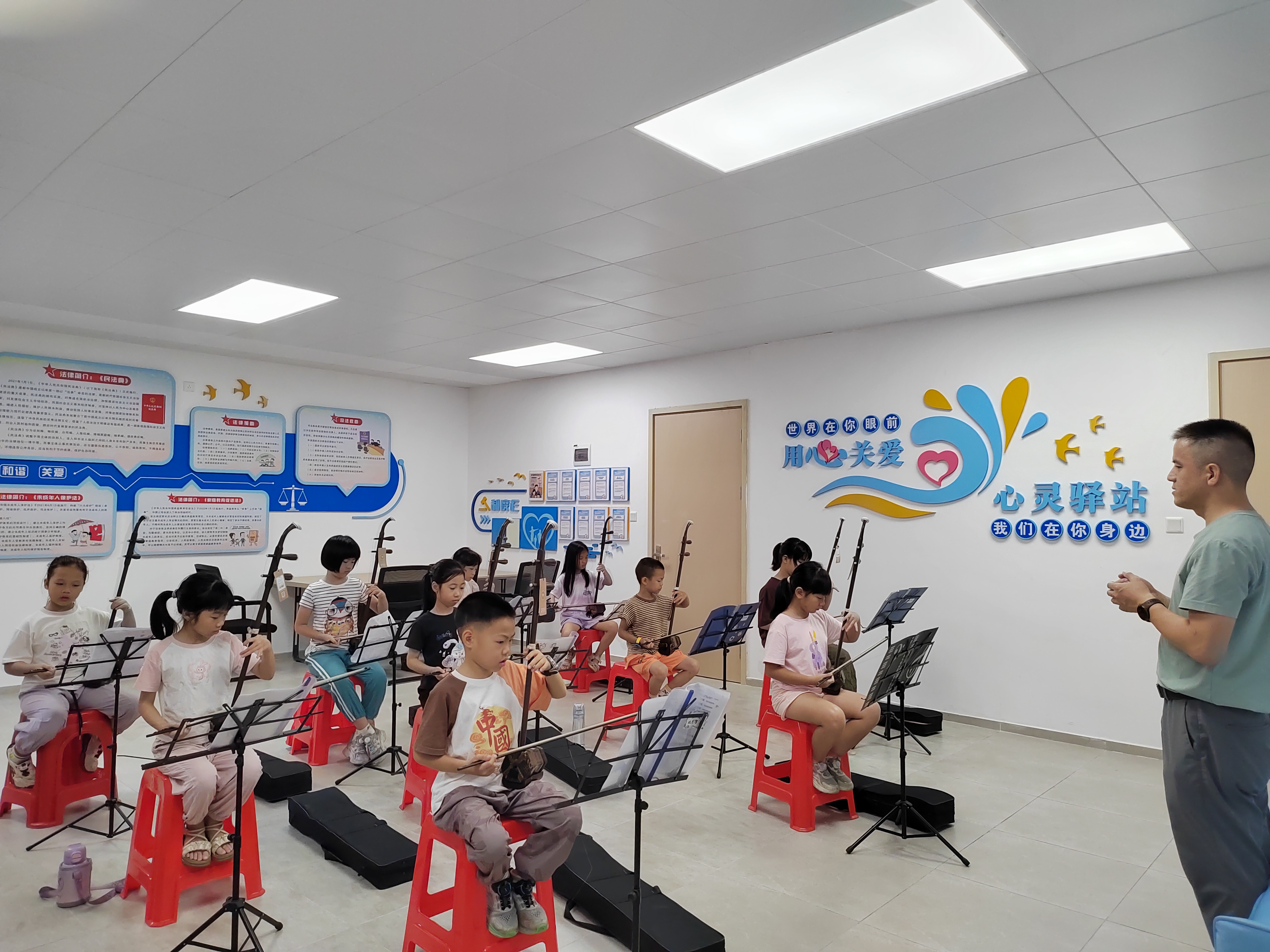 ▲雁山社區(qū)攜手培訓(xùn)機(jī)構(gòu)在心理咨詢室開展二胡培訓(xùn)班