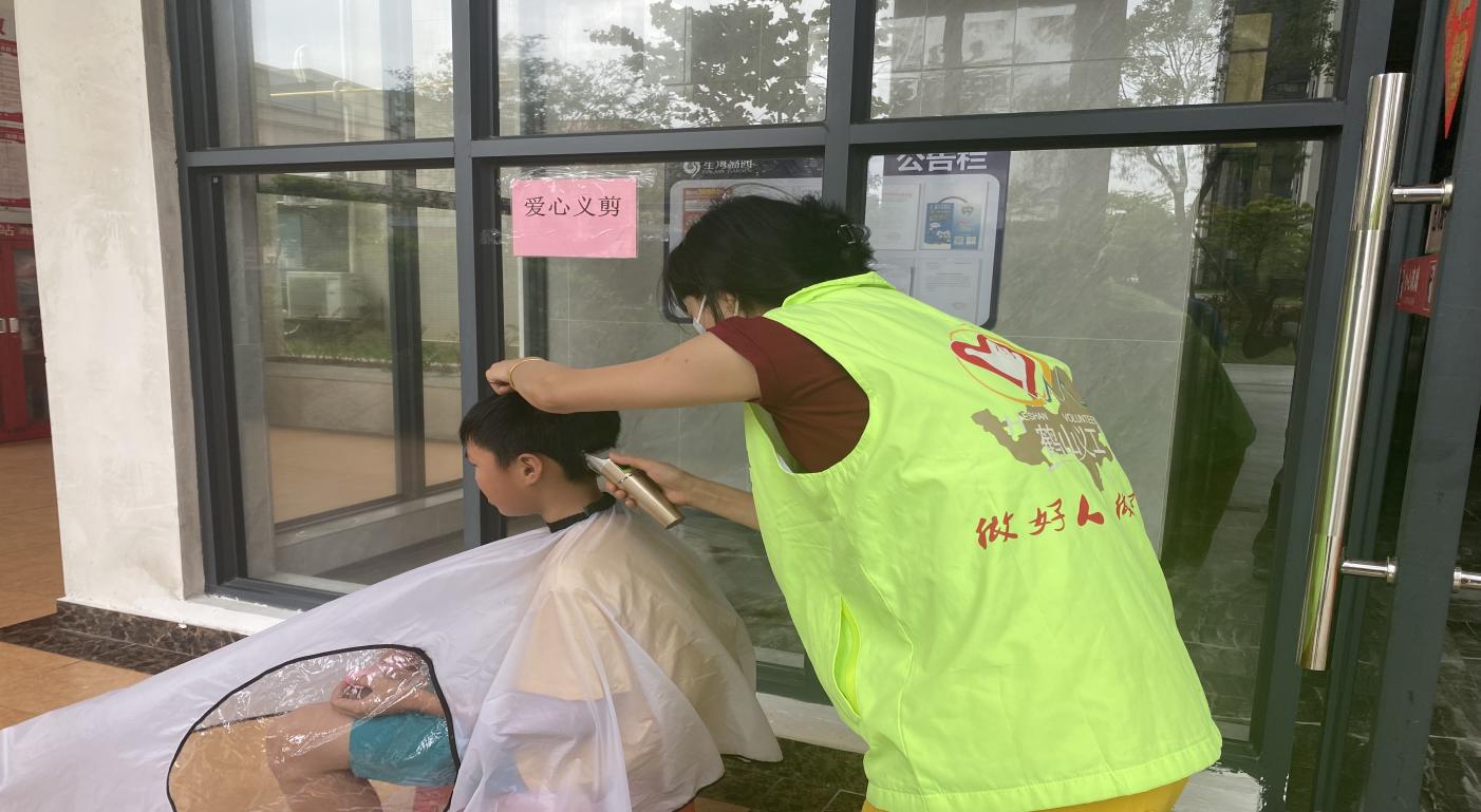 ▲和平社區(qū)“社區(qū)合伙人”為居民理發(fā)”