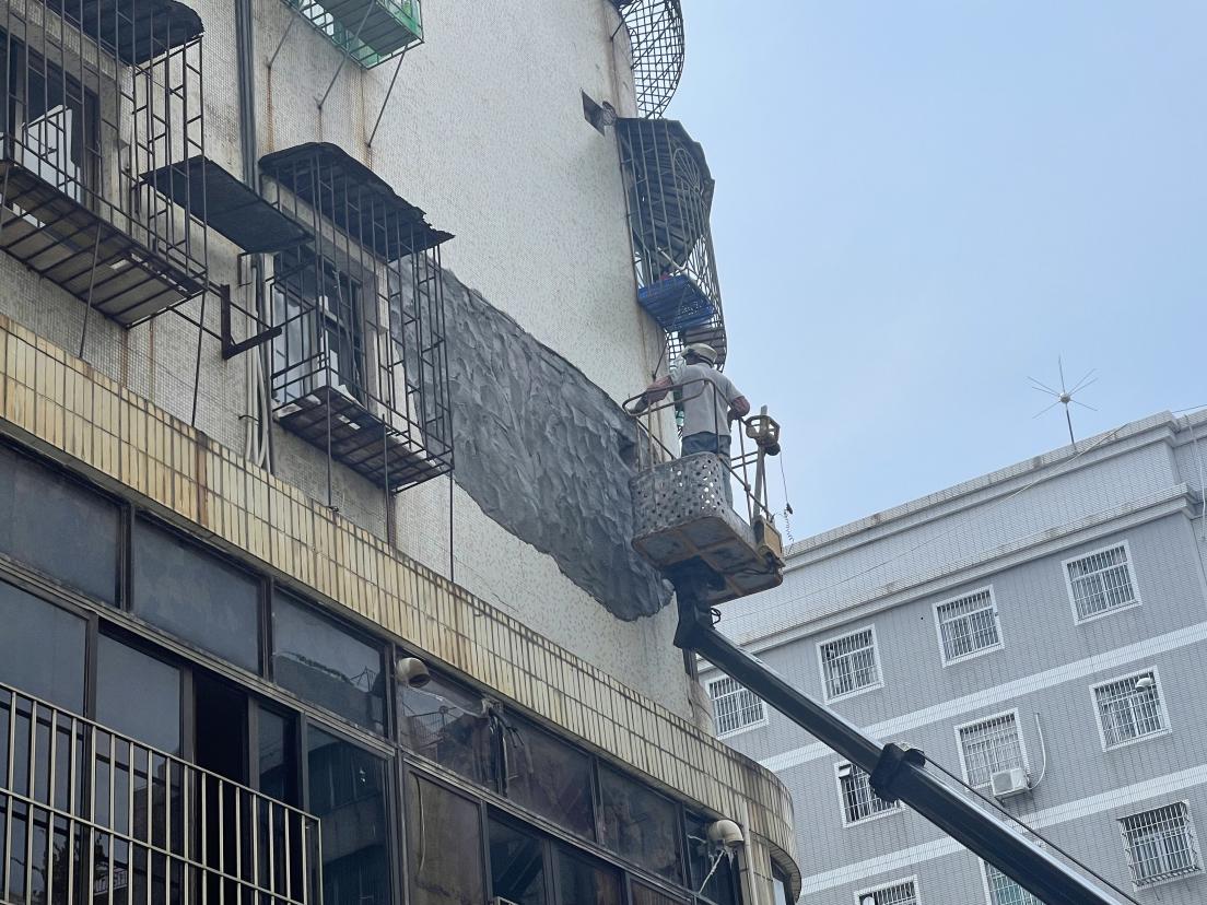 ▲發(fā)揮中華園教師村物管會作用修補3號樓外墻問題