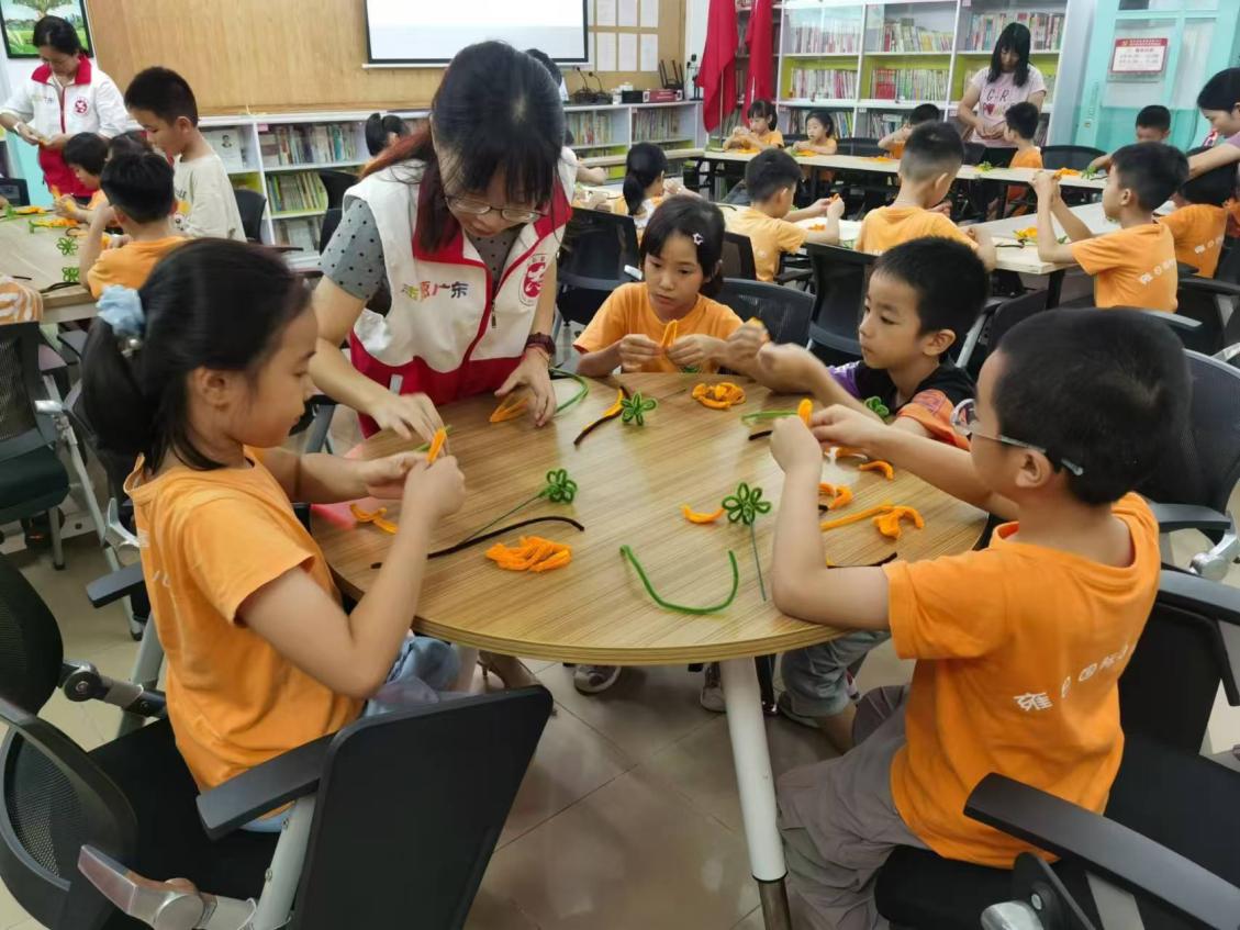 ▲孩子們在“綠色小課堂”上參加扭扭棒DIY活動