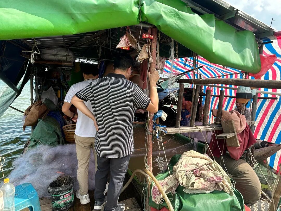 ▲引導(dǎo)漁民上岸避風(fēng),做好漁船加固和管理
