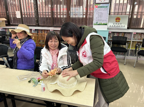 3月5日,義學(xué)社區(qū)開展“詩情花藝迎三八 義心聚力紅新春”手工制作活動