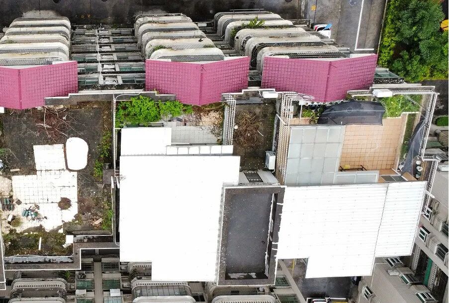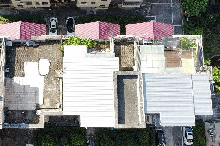 東升小園樓頂整治前后對比(左圖為整治前 右圖為整治后)