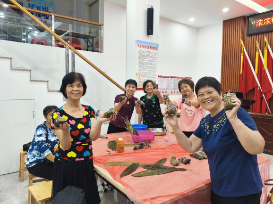 ▲文邊新時(shí)代文明實(shí)踐站開(kāi)展手工粽子包制作活動(dòng)