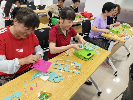 ▲新業(yè)社區(qū)新時(shí)代文明實(shí)踐站開展蝴蝶手工花制作活動(dòng)