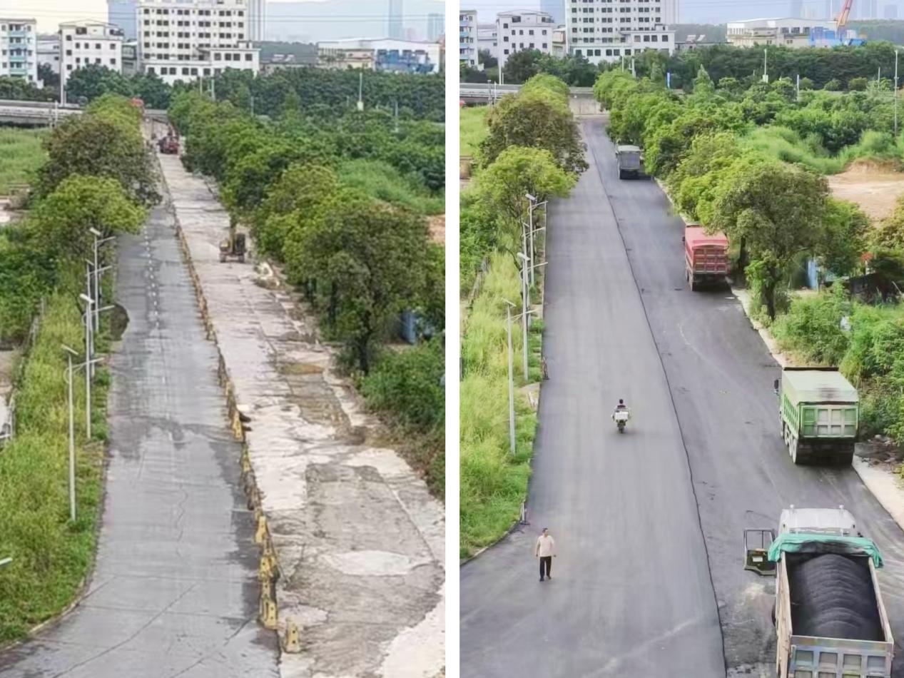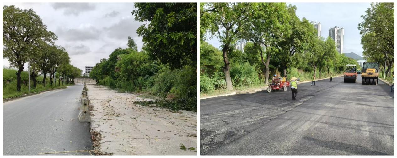 ▲一小東校區(qū)門前道路提升前后對(duì)比