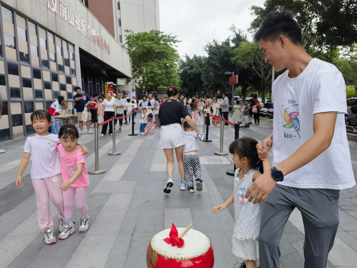 ▲南山社區(qū)在黨群服務(wù)中心門前廣場(chǎng)開(kāi)展親子游園活動(dòng)