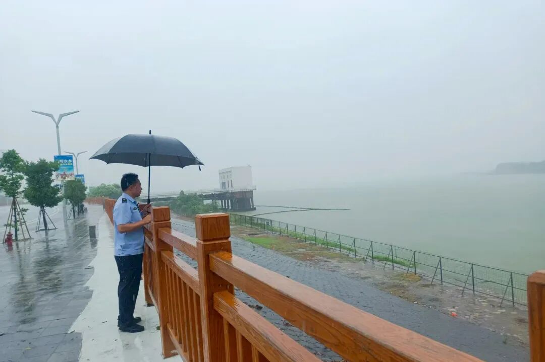 ▲巡查轄區(qū)企業(yè)并做好防風(fēng)防汛提醒