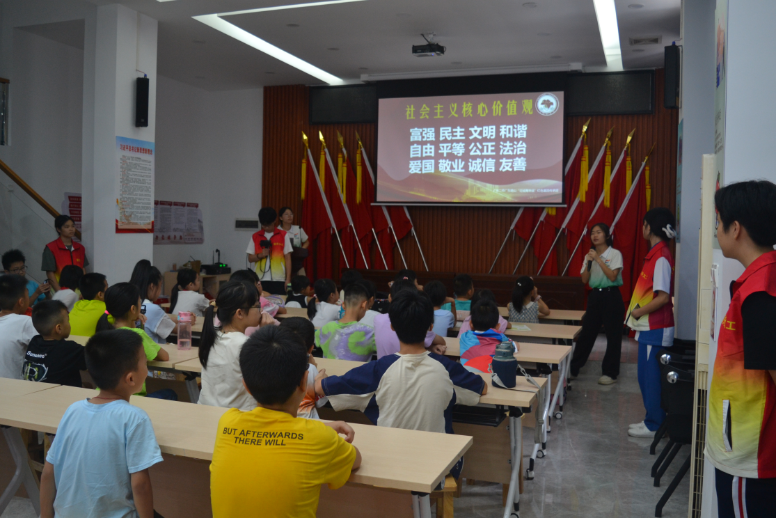 ▲“紅旗飄飄”志愿服務(wù)隊(duì)在弘揚(yáng)社會(huì)主義核心價(jià)值觀