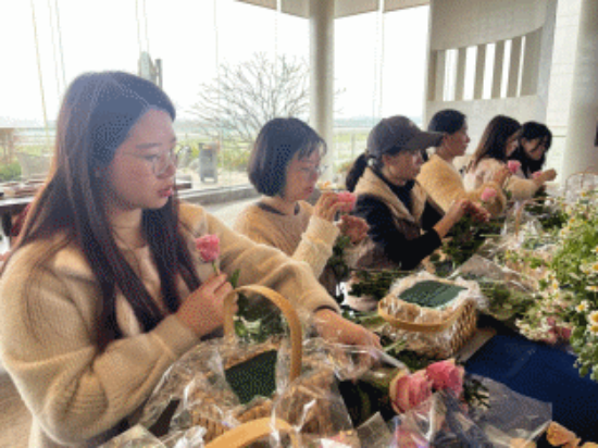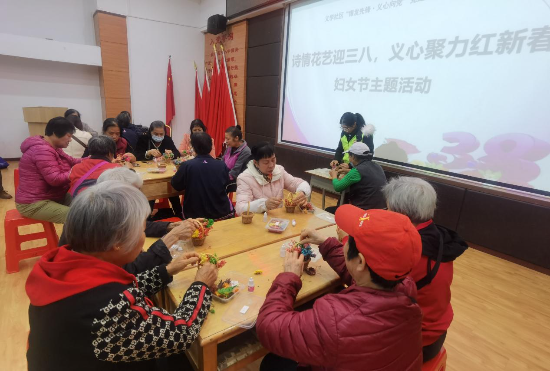 3月5日,義學(xué)社區(qū)開展“詩情花藝迎三八 義心聚力紅新春”手工制作活動
