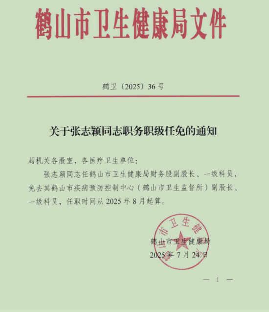 關(guān)于張志穎同志職務(wù)職級(jí)任免的通知